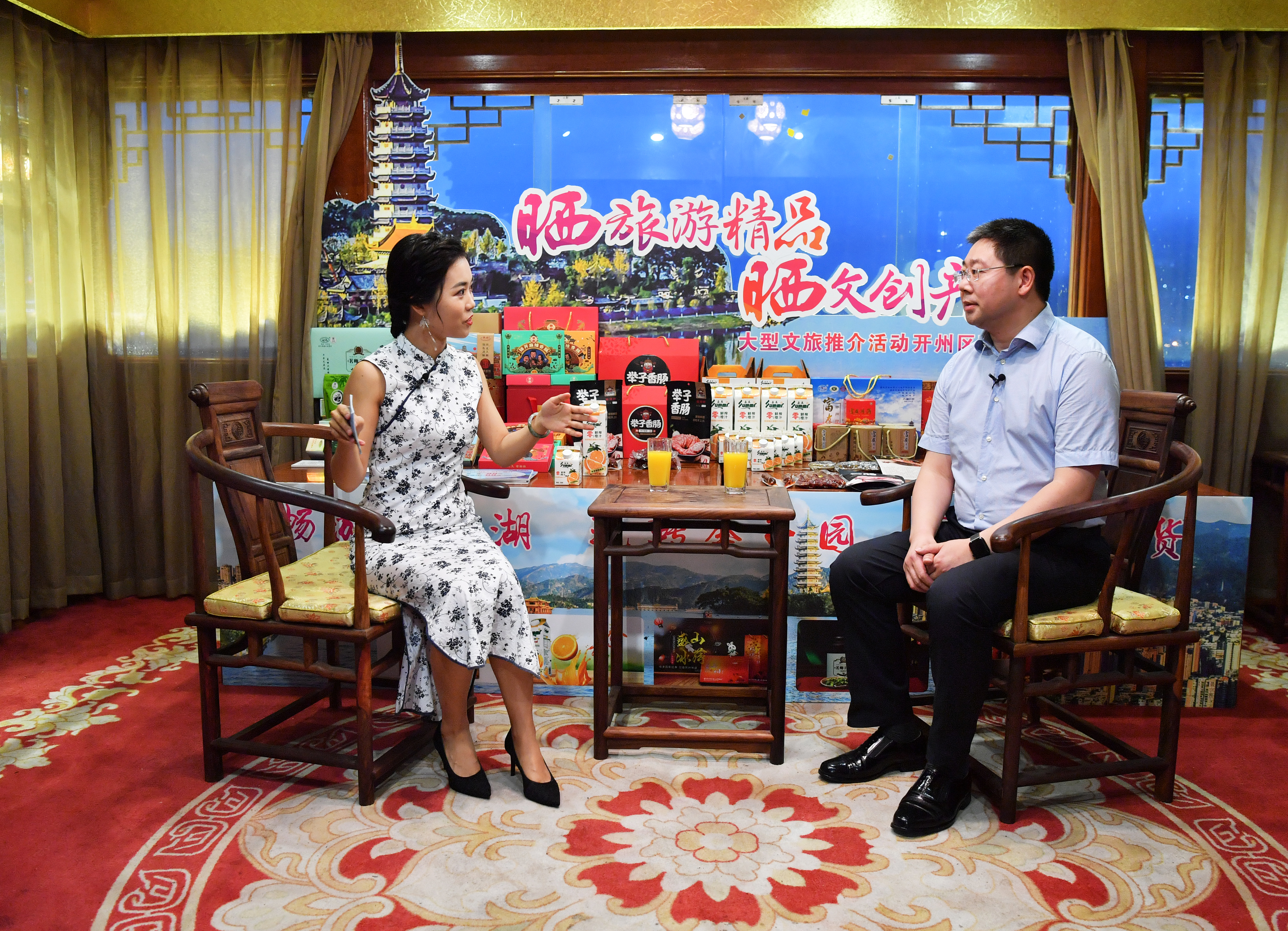 ↑6月11日拍摄的“晒旅游精品·晒文创产品”大型文旅推介活动直播现场。