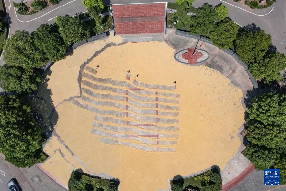 ▲8月20日,人们在重庆市永川区红炉镇政府广场上晾晒粮食(无人机照片)。记者 黄伟 摄/新华社