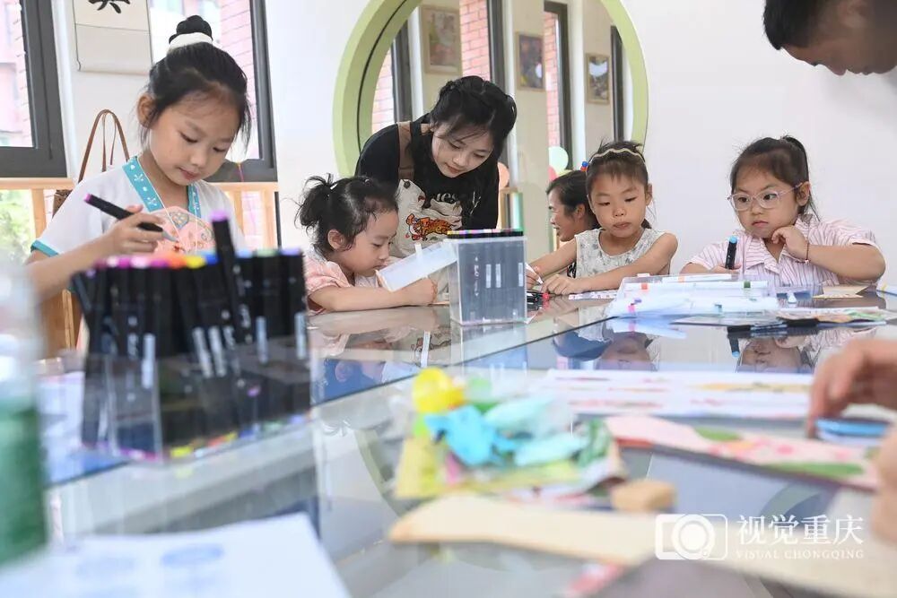 ▲重庆市九龙坡区黄桷坪街道邮电支路社区综合体,孩子们正在托管中心学习美术课程。记者 郑宇 摄/视觉重庆