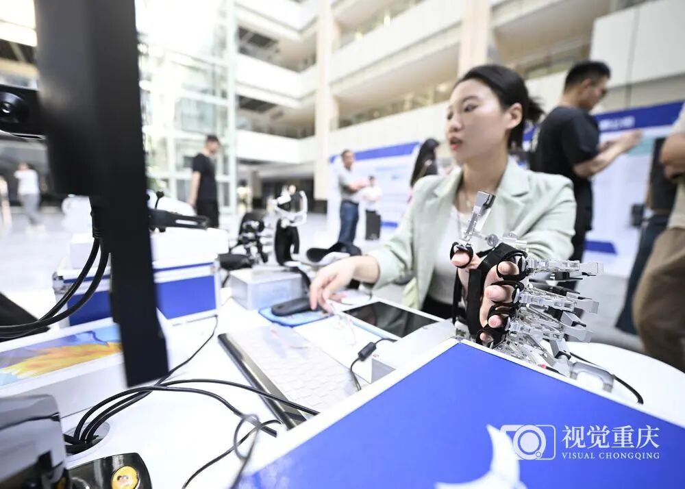 ▲重庆市南岸区迎龙创新港,重庆脑与智能科学中心,工作人员展示交互式体验与最新研究成果。记者 齐岚森 摄/视觉重庆