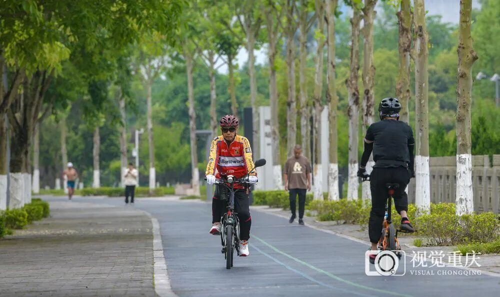 ▲市民在绿树成荫的两江新区礼嘉山城步道骑行、漫步。记者 张锦辉 摄/视觉重庆