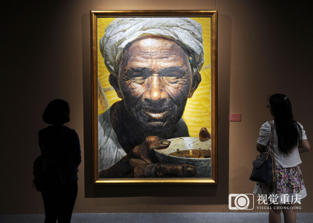 ▲市民正在欣赏当代画家罗中立的油画作品《父亲》。记者 熊明 摄/视觉重庆