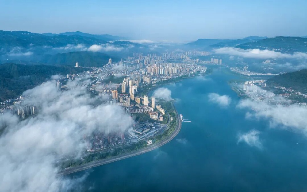 ▲2025年6月11日,开州城区云雾缭绕,青山、碧水、城市共同构成一幅生态宜居的山水画卷。通讯员 王晓宇 摄/视觉重庆