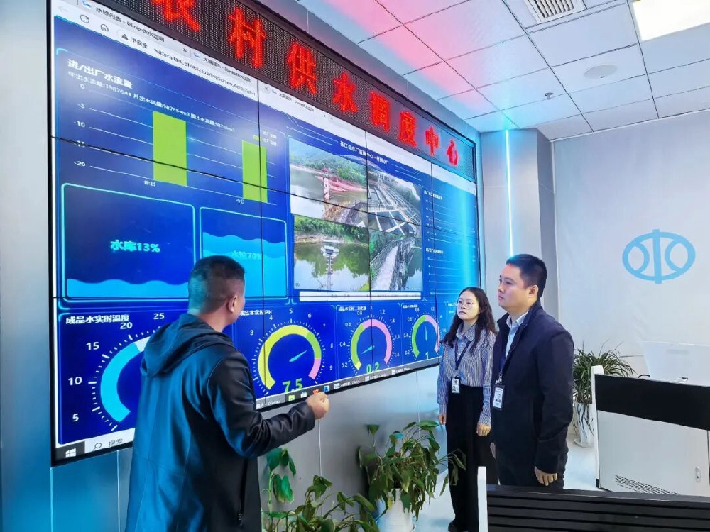 ▲綦江区纪委监委将农村供水保障纳入民生实事监督重点,围绕水源地保护、供水管网维护、饮水工程建设进度等情况,通过查阅台账、实地走访、调研座谈等方式开展专项监督,督促相关职能部门落实好行业监管责任,推动解决群众饮水方面的急难愁盼问题。图为该区纪检监察干部在农村供水调度中心实地了解水质监测、实时预警等情况。