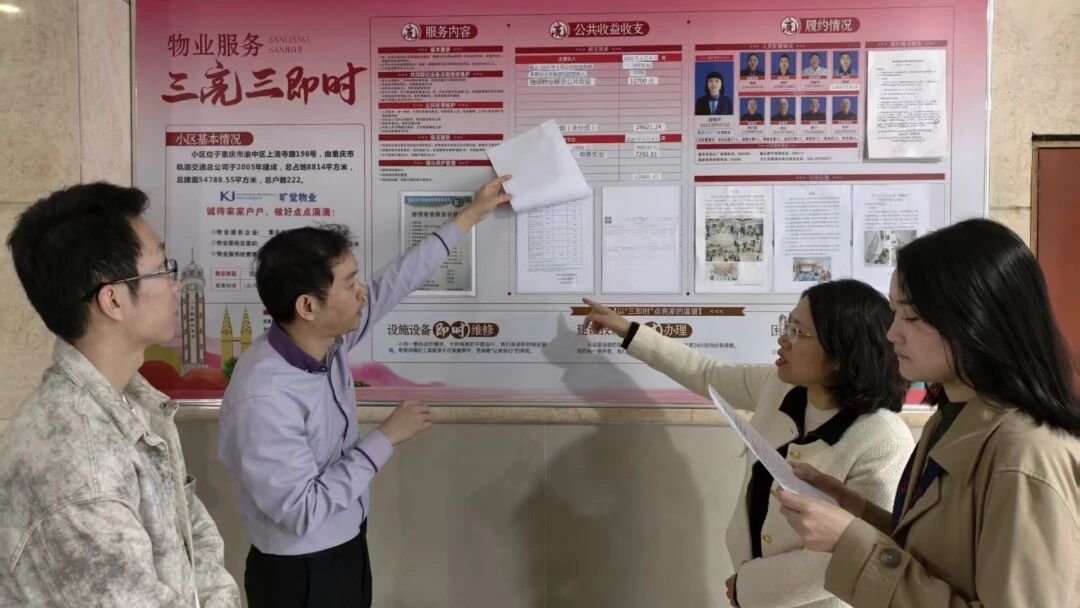 ▲渝中区纪委监委立足“监督的再监督”职责,坚持问题导向,通过走访调研、翻阅资料、个别谈话等方式,针对住宅小区公共收益使用、管理、公示等情况开展监督检查,推动职能部门制定规范住宅小区公共收益管理的指导意见,切实守牢守好群众“钱袋子”。图为该区纪委监委联合上清寺街道纪工委现场查看嘉西村社区公共收益公示情况。
