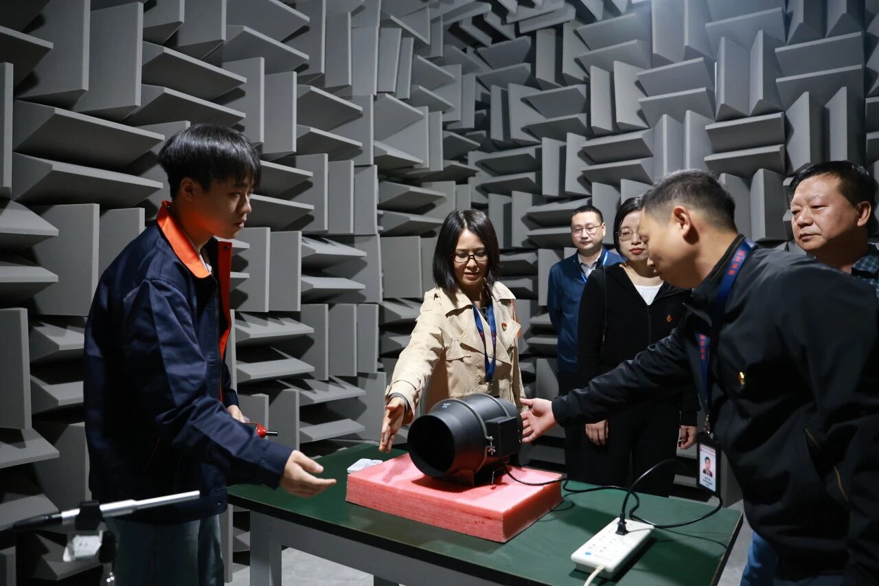 ▲梁平区纪委监委聚焦低空经济、食品及农产品加工、集成电路三大特色产业,突出靠前监督、精准监督,深入开展“百名纪检监察干部走基层”活动,问需于民、问需于企,以精准有效监督为特色产业可持续发展提供坚强纪律保障。图为近日,该区纪检监察干部在某高新企业噪音实验室了解相关情况。