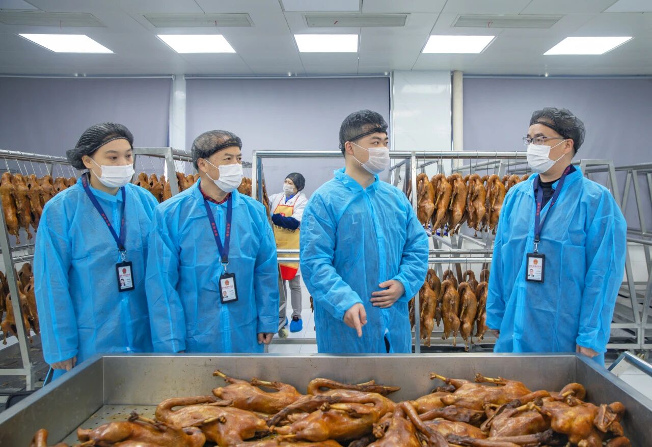 ▲荣昌区纪委监委统筹“室组地”力量,深入田间地头、厂房车间,与农户、企业面对面交流,重点检查政策是否存在“空转”现象,扶持资金是否及时足额发放,审批流程是否简化高效等情况,着力发现并推动解决“中梗阻”问题,同时督促行业主管部门从养殖、加工、销售等环节,加强对卤鹅产业全链条管理和服务。图为近日,该区纪检监察干部在重庆鹅嫂食品科技有限公司加工车间了解相关情况。