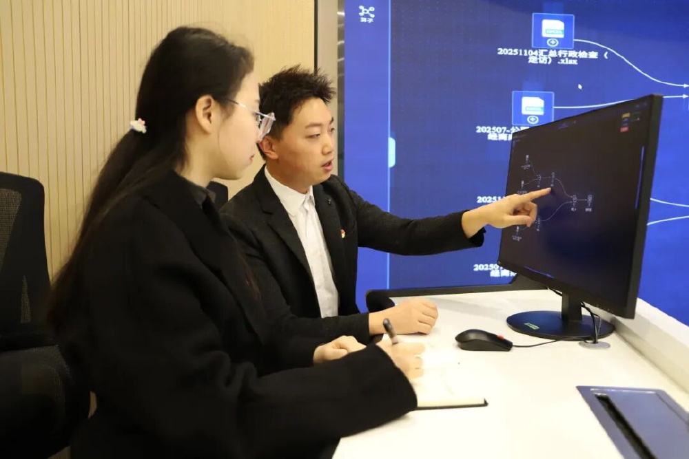 ▲綦江区纪委监委深化运用大数据技术拓展监督手段,依托“綦数参战”数字赋能实验室,整合财政、税务等多部门数据信息,通过“数据比对+线下核验”方式,精准识别并查处虚构项目、骗取补贴等行为,确保惠企政策精准直达市场主体。图为该区纪检监察干部通过综合数据分析系统筛查问题线索、分析异常数据。