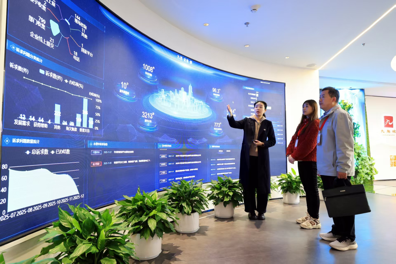 ▲九龙坡区纪委监委将优化营商环境作为政治监督的重点,就监督中企业反映突出问题,督促行业部门畅通企业线上投诉渠道与评价系统,常态化跟踪办理成效,严查乱作为、不作为、不敢为、不善为等违纪违法行为,推动政务服务进一步优化,合力营造“办事不求人”的营商环境。图为该区纪检监察干部在了解“九龙·企业·家”线上服务平台与投诉评价系统的运行使用情况。
