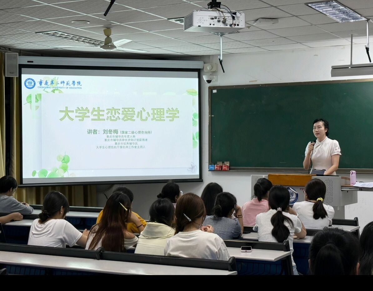 ▲重庆第二师范学院刘冬梅老师给大学生上《大学生恋爱心理学》通识选修课。