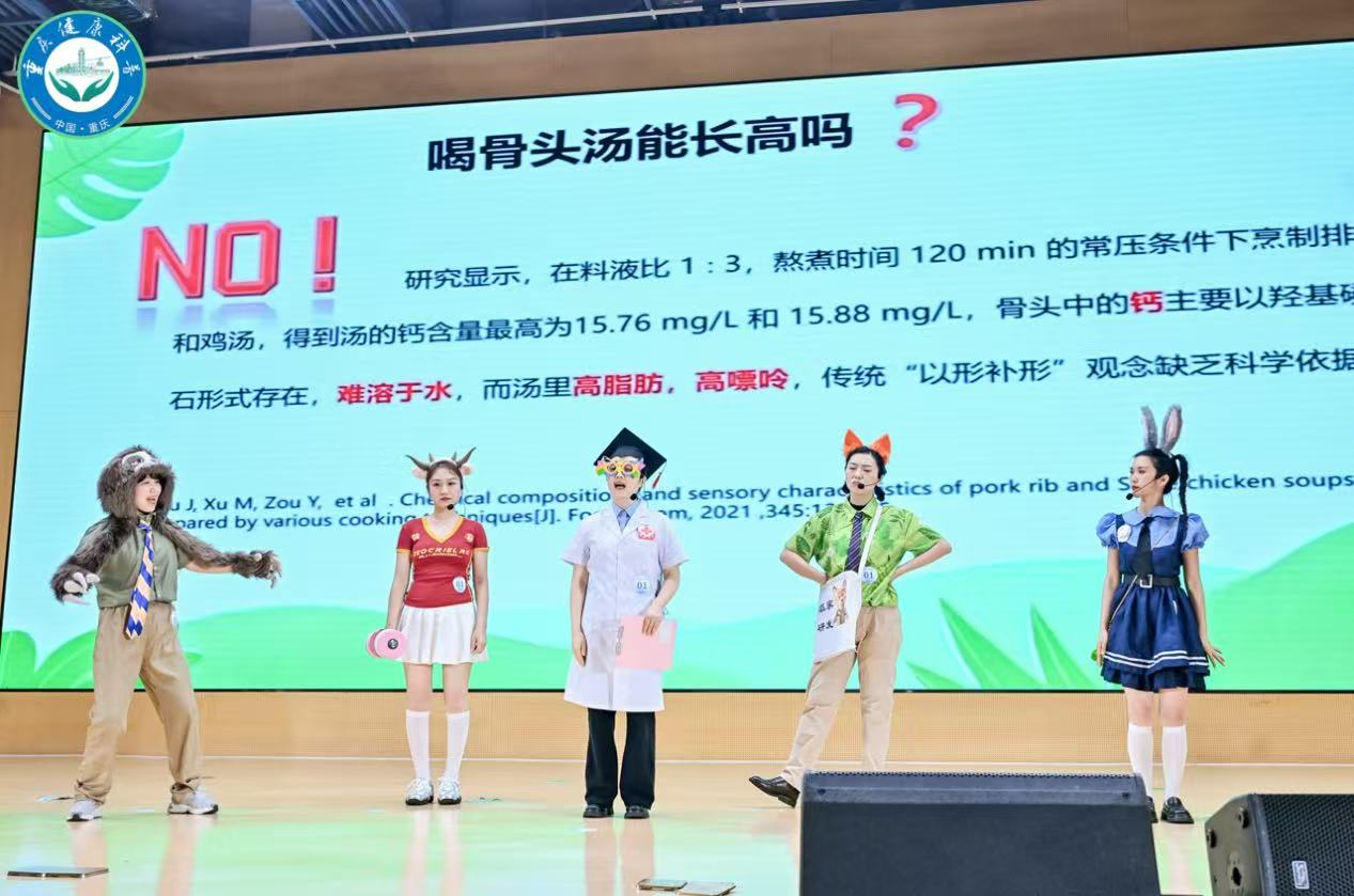 “你才不是什么好蘑菇,吃了可就中毒了。”在九龙坡区疾控中心选手带来的作品《黑神话降“魔”》中,选手装扮为唐僧、悟空、毒蘑菇等角色,传递避免毒蘑菇中毒的知识;市妇幼保健院的选手们则以体重管理为题,演绎了爱美女士盼盼为减肥与母亲斗智斗勇,导致月经推迟、贫血、成绩下滑的故事,传递了青春期科学减肥的秘诀;来自綦江区文龙街道社区卫生服务中心的选手则以评书的形式,从健康饮食、规律生活、科学管理等角度,提醒高血压患者要规律服药,提升服药依从性。