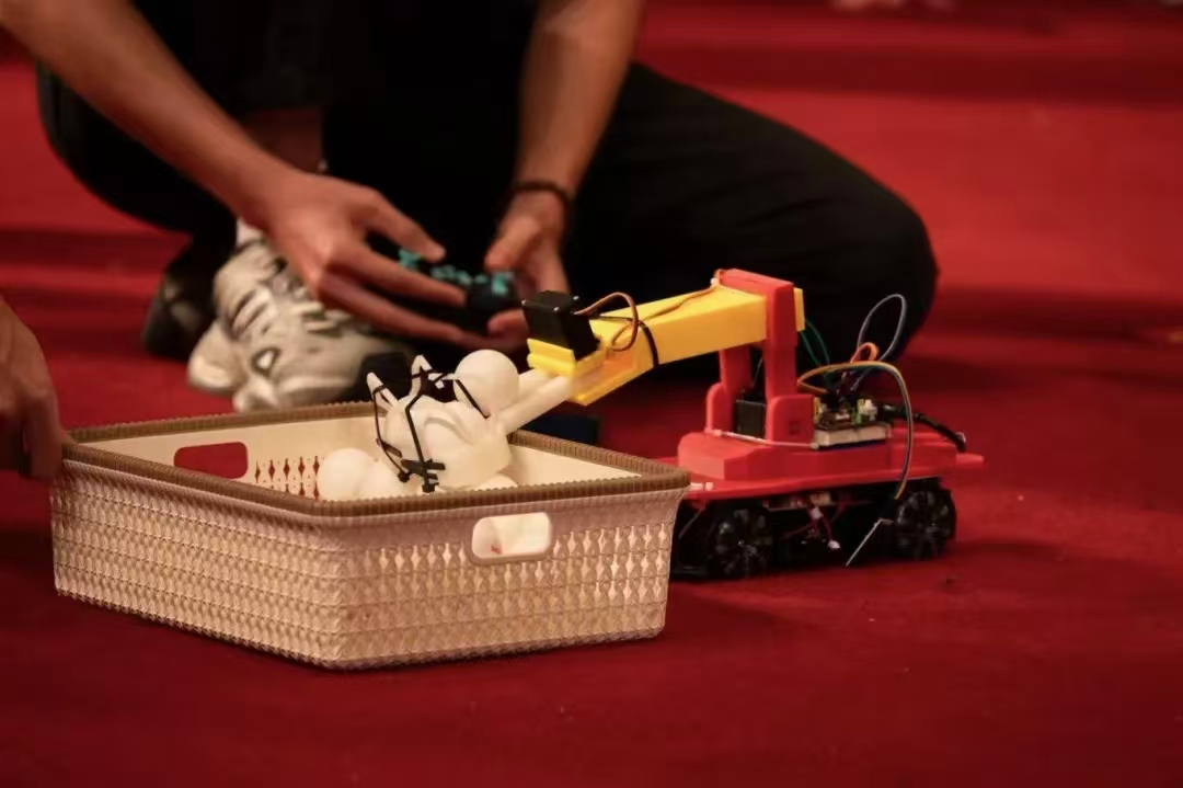 随着裁判一声令下,选手们迅速启动程序,各种搭载机械夹爪的小型履带式机器人、配备视觉识别系统多关节机械臂的机器人开始在预设轨道上灵活移动,有的如敏锐的鹰眼般精准识别乒乓球的颜色与位置,实现精准抓取;有的则通过负压吸附装置,一次性完成多球抓取与转运……