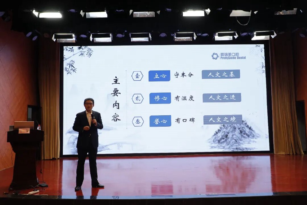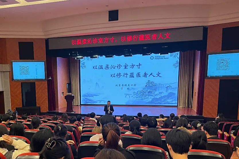 为深入贯彻落实立德树人根本任务,持续加强医学人文建设与高素质医疗卫生人才培养。10月22日,重医附属口腔医院特邀北京普瑞美口腔创始人丁鹏博士作“以温柔沁诊室方寸,以修行蕴医者人文”专题讲座。院领导班子成员、在读研究生、临床医师代表及部分职能部门负责人参加此次活动,现场交流踊跃,学习氛围浓厚。