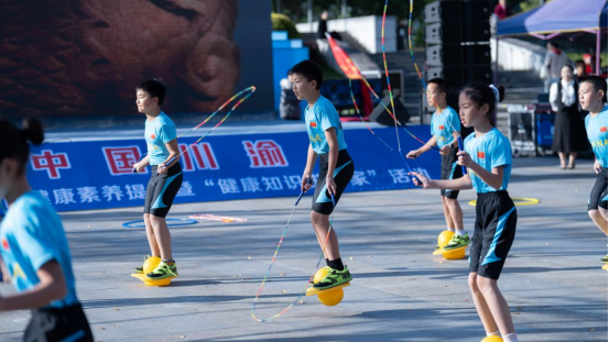 仪式结束后,精彩的科普展演轮番上演,点燃全场热情。30名青少年身着亮色运动服带来花式跳绳表演,绳子在他们脚下翻飞如彩虹,单跳、双跳、交叉跳、多人同步跳轮番切换,身姿轻盈如燕,伴着欢快的节拍跃动,满场的活力与朝气感染着每一位观众;30人组成的柔力球表演阵容整齐,队员们手持彩球,在音乐中舒展身姿,抛、接、绕、转动作行云流水,刚劲中透着柔美,将力量与韵律完美融合;15名表演者身着飘逸彩衣跳起彩带舞,五彩彩带随舞步在空中划出优美弧线,时而如彩蝶翻飞,时而如溪流婉转,灵动的舞姿展现出群众对健康生活的热爱。万州区、达州市、开州区、云阳县精心选送的4个健康科普节目,以情景剧等通俗易懂、寓教于乐的形式传递健康知识,台词诙谐接地气,表演生动有感染力,赢得现场观众阵阵掌声与喝彩。