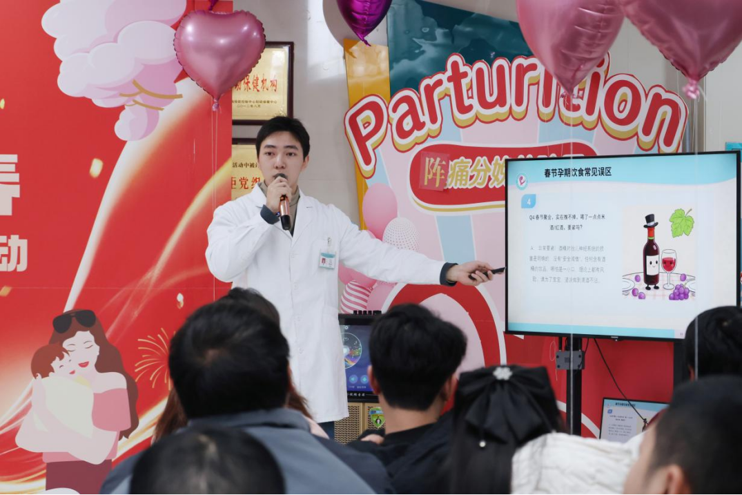 随后,营养师刘宇晨带来“春节怎么吃?”主题健康科普,结合节日饮食特点,讲解孕期合理膳食搭配原则,重点提醒避免高油、高糖及过量进补等常见问题,倡导“均衡营养+适量运动”的健康理念。