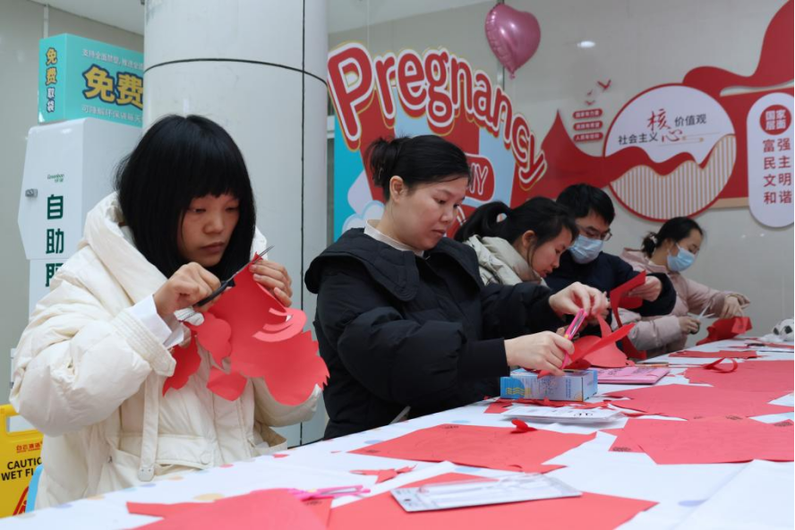 手工DIY区充满节日温情。医院免费提供了剪纸材料,孕产家庭携手合作,共同制作马年窗花。一个个精致的手工作品,既承载着对新年的美好期许,也饱含着对新生命的真挚祝福,大家在创作中共享快乐与节日喜悦。