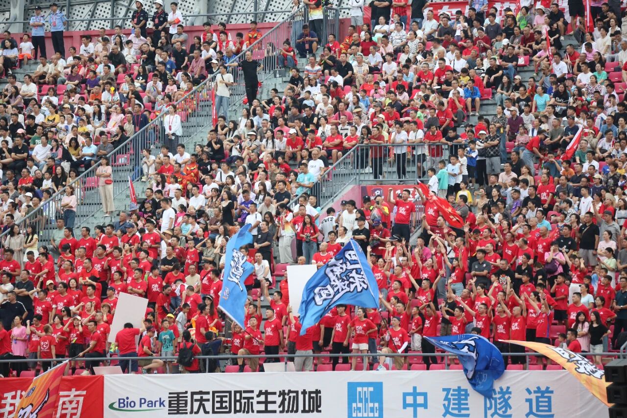 终场哨响,比分定格在0比4。巴南生物城队的球员们虽难掩失落,却依然整齐地走向看台,向球迷深深鞠躬致谢。现场立刻响起“巴南雄起”的震天呐喊,主场球迷用持续的掌声回应球员的拼搏。这场跨越看台与赛场的双向奔赴,生动诠释了“渝超”赛事的情感价值。渝北临空队球员也主动上前握手致意,以行动表达对对手拼搏精神的尊重,彰显“友谊第一,比赛第二”的体育风尚。