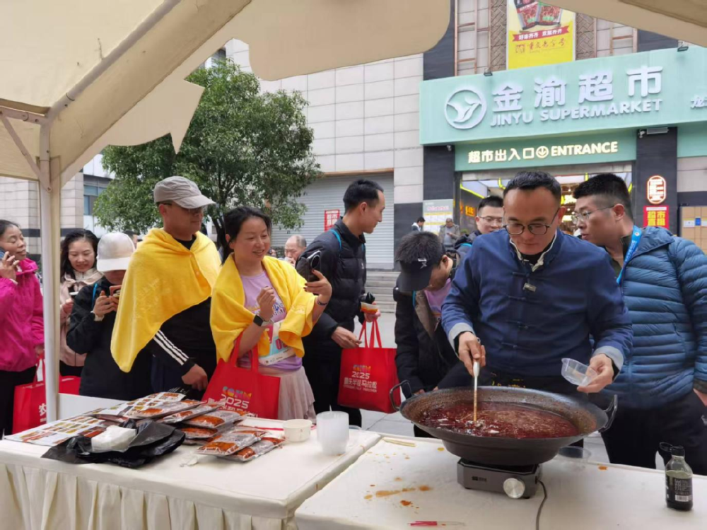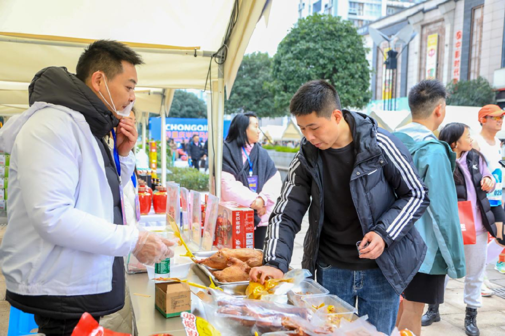 区县特色品牌专区更是热闹非凡,巴南土特产、小面底料等产品琳琅满目,商家们扯着嗓子吆喝,“免费试吃”“折扣有礼”的促销声此起彼伏,展位前排起了长队。
