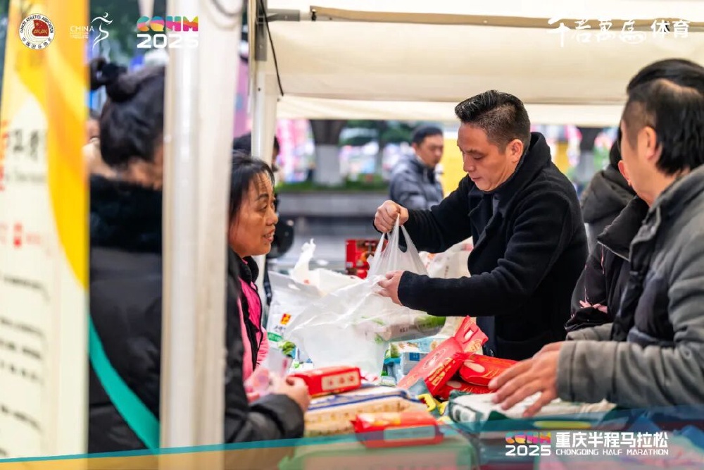 记者还注意到,“渝味360碗”巴南九大碗、老字号、农副产品等巴南特色美食也来到了展会现场,供跑友免费品尝。商家为跑友们盛饭递汤,场面忙而有序。