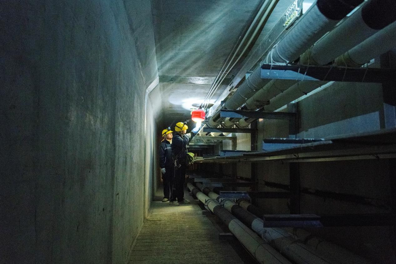 运维人员沿通道细致排查,用红外紫外双光谱成像仪扫描部件、捕捉异常温升,操作钳形表检测接地环流参数,同步记录数据、分析隐患。他们重点检查电缆接头、终端等关键部位,严防破损、老化、过热等问题,同时排查隧道通风、排水、消防系统,及时消除隐患。