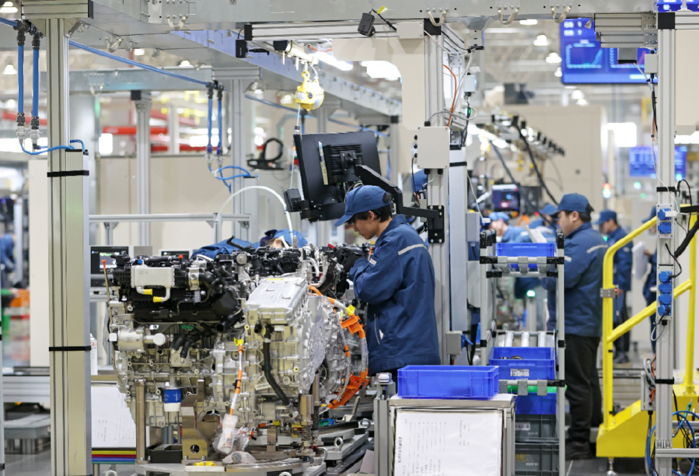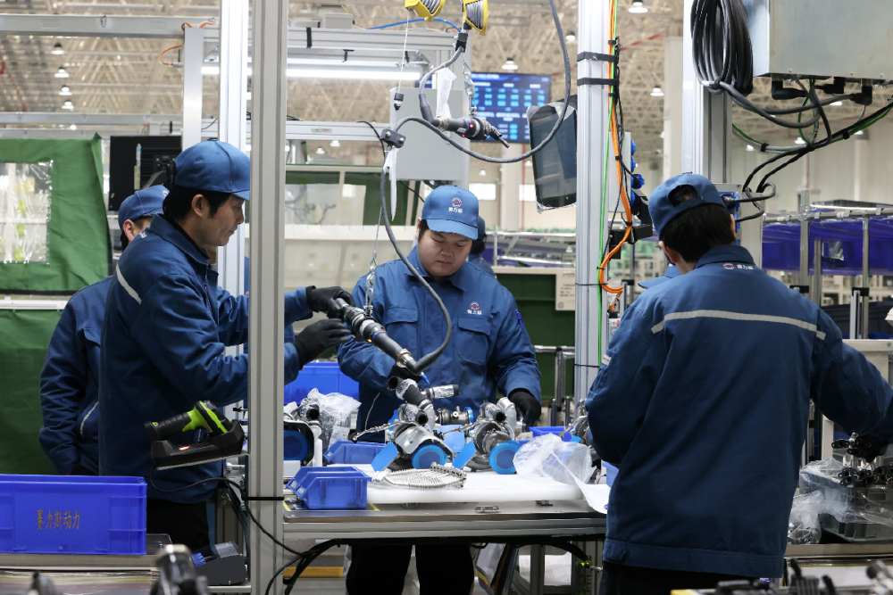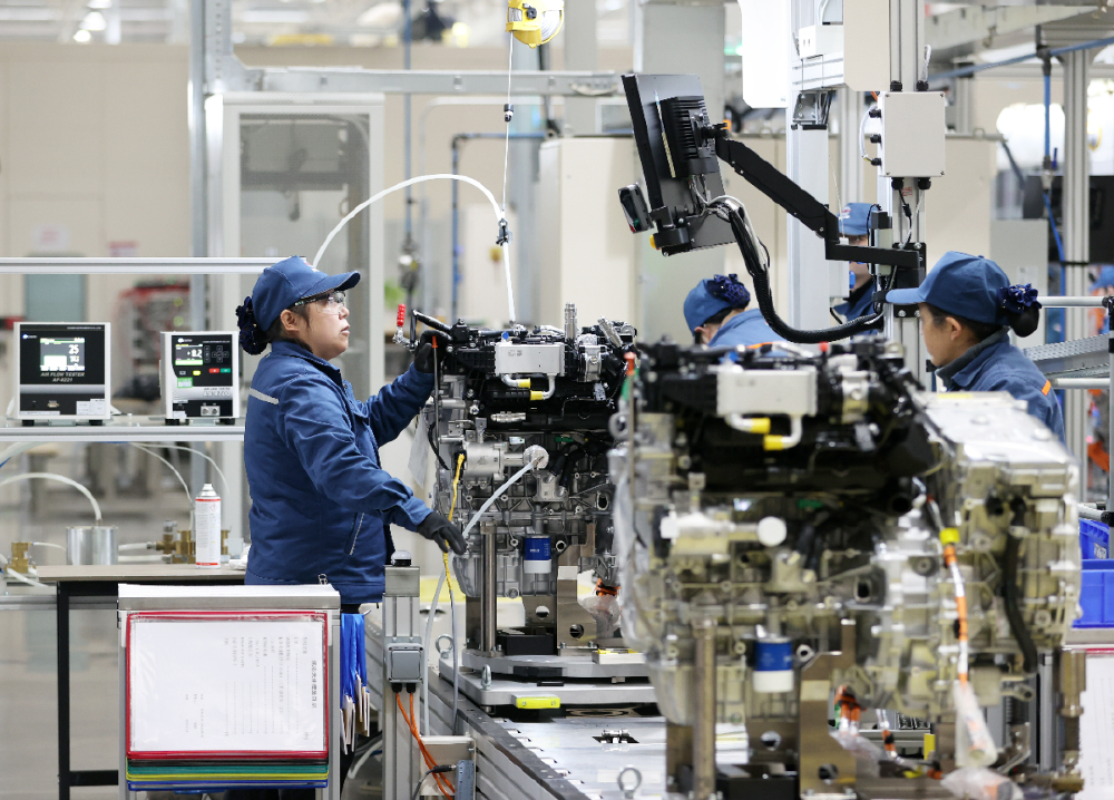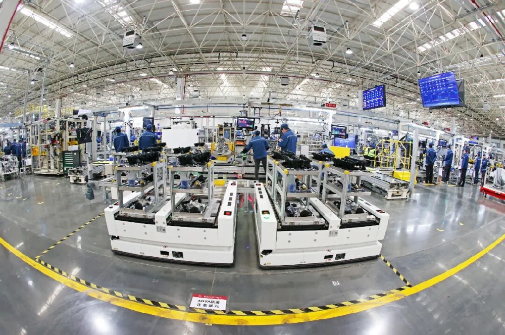 机械臂精准抓取,AGV小车无声穿梭……车间内,一台台崭新的增程动力总成在高度自动化的流水线上诞生。