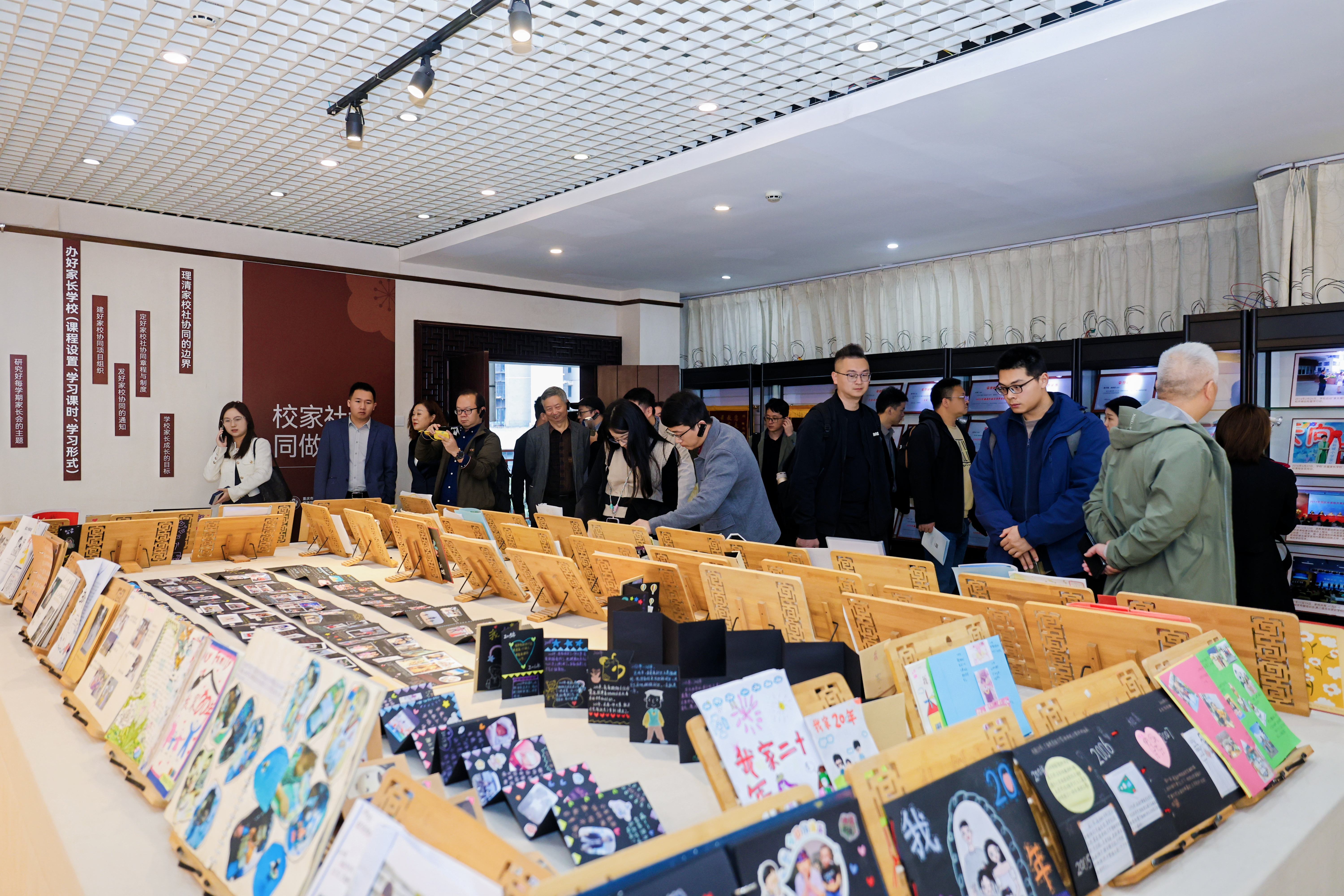 访学团一行在校园内实地观摩了多个教学与实践场景。在校门口“亲子时光”展示区,由感恩日记、亲子菜单等构成的“五单”机制,展示了家校互动的创新模式;在学术报告厅外,203班学生的经典素读微课展现了传统文化与日常教学的深度融合;延时服务微课上,演讲、速叠杯等多元活动则体现了“五育并举”的生动实践。此外,学校独具特色的家长督学制度、运用VR技术的红色教育长廊等,都给访学团留下了深刻印象。
