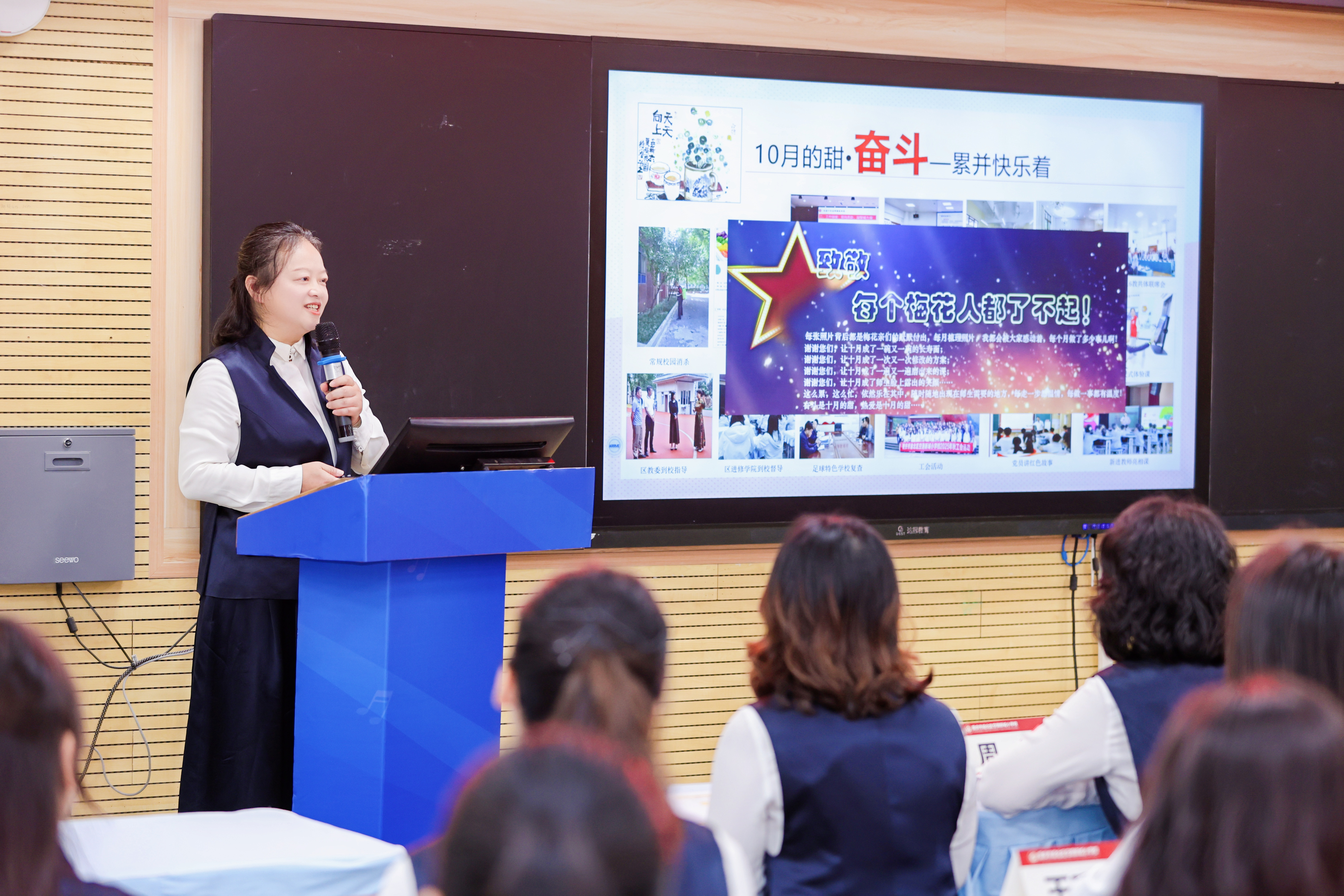 在交流环节,陈中梅主持了梅花团队月度工作会议,系统展示了学校以“跟进”和“六好”为标准的管理与执行体系。陈中梅还以“家校社协同育人的探索与实践”为题作分享,阐述了学校以党的教育方针为遵循,联动家庭、社区及专业机构,构建协同育人共同体的思考与成果。期间,自然资源部重庆测绘院专家为学生们带来的《地图里的中国》科普课,现场呈现“教联体”联动专业机构赋能教育的生动场景。