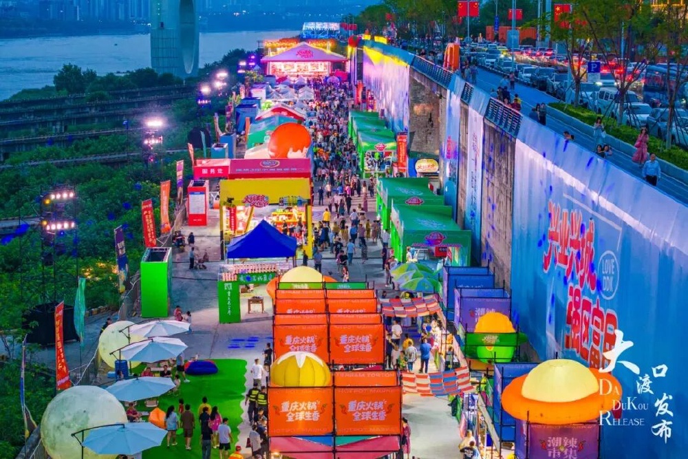 大渡口融合创新,以“美食为媒、经济唱戏”,举办“星际穿越”重庆火锅天下宴、江岸火锅音乐会、潮辣市集等活动,联动3000家门店推出“火锅马拉松”,让四海宾朋沉浸式感受“麻、辣、鲜、香”的新韵重庆。