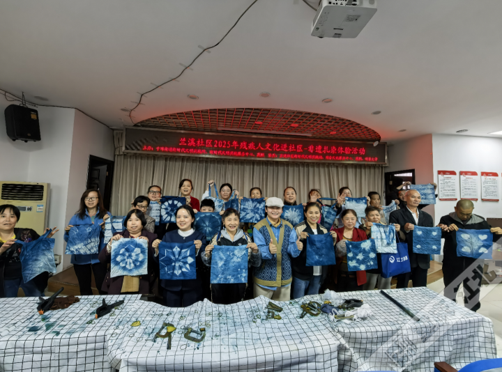 为丰富残疾人精神文化生活,传承中华优秀传统文化,近日,江北区寸滩街道兰溪社区特开展一场别开生面的非遗扎染体验活动。