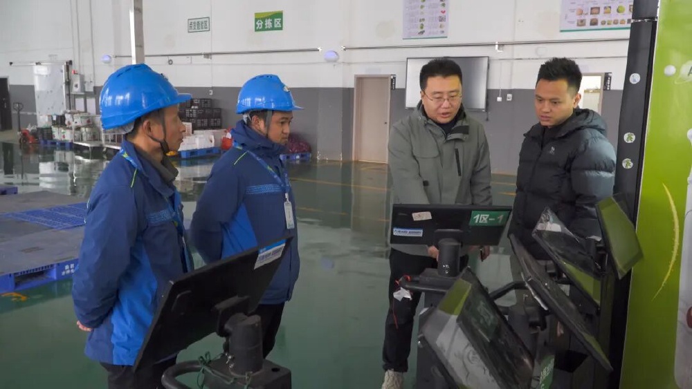 ▲评估组在涪源食品生鲜仓储分拣中心进行验收测试