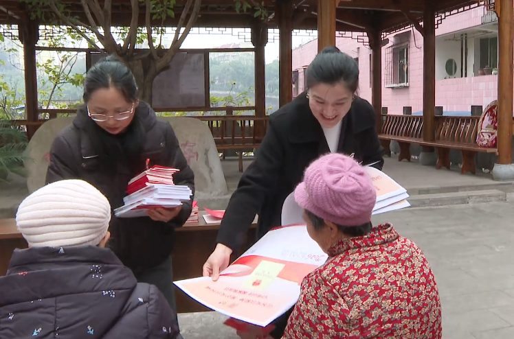 “人大代表们把宪法送进了社区,让我们又一次系统了解了宪法知识,我觉得这个普法行动非常有意义。”——三合街道平都中路社区居民 冉建兰