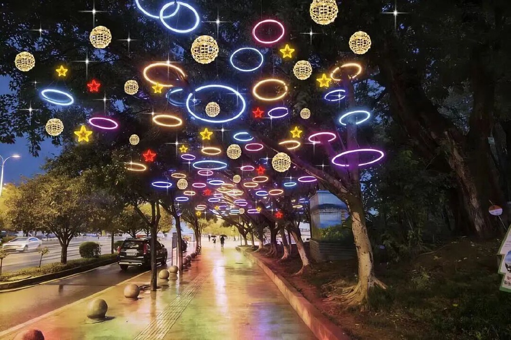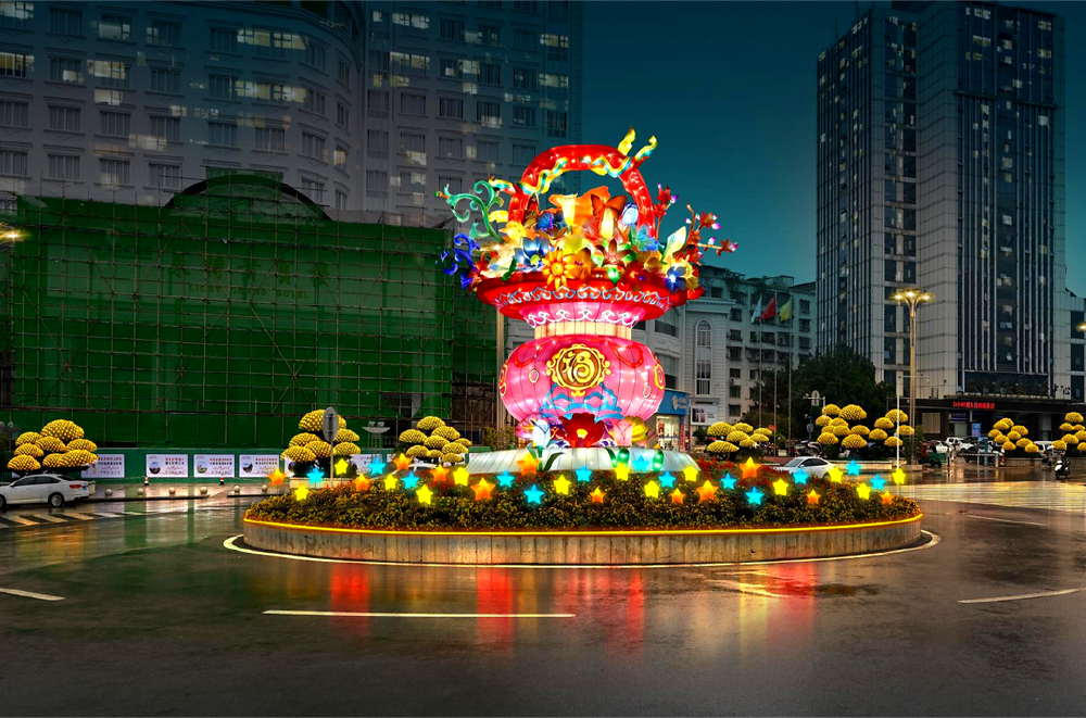 道路两旁将挂满寓意吉祥的“福袋”造型灯饰。走在街头,就像走进了福气满满的聚宝盆,带给您新一年的好彩头。