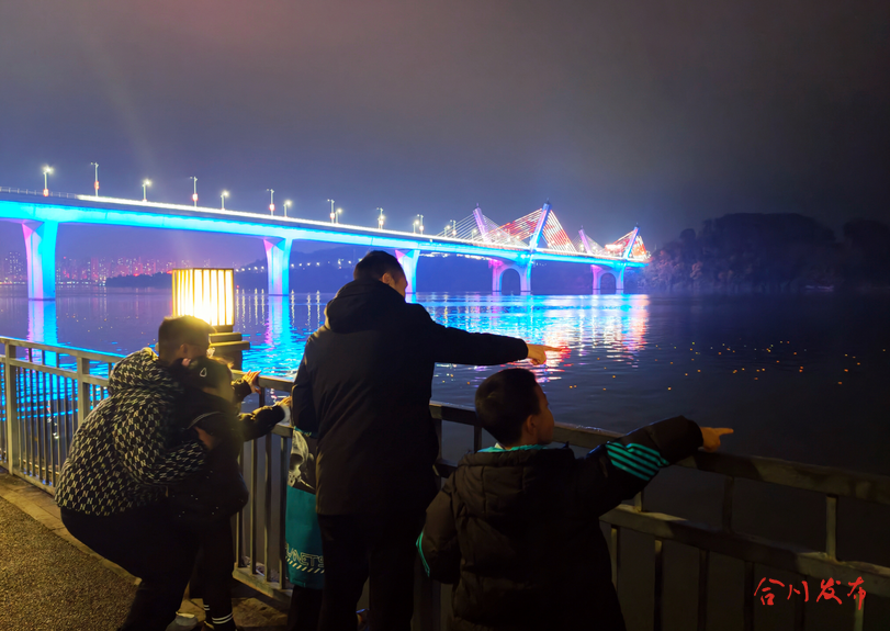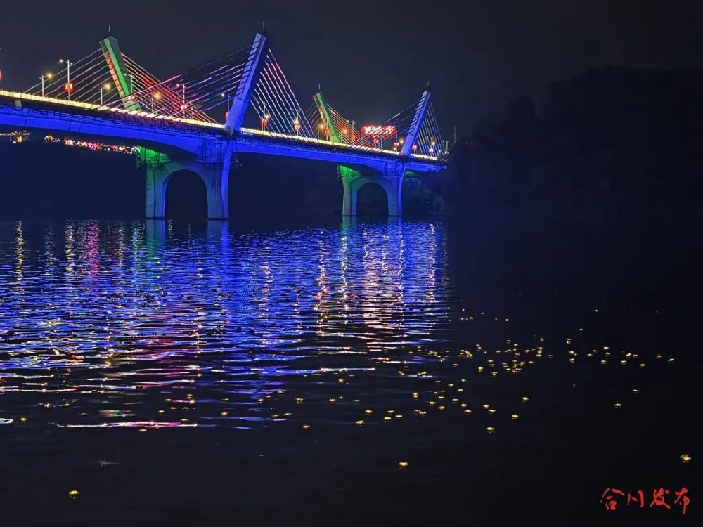 同晚,嘉陵江畔的河灯投放活动以“星耀合川 福聚江湾”为主题,投放2000盏河灯,为冬日江湾增添温情。