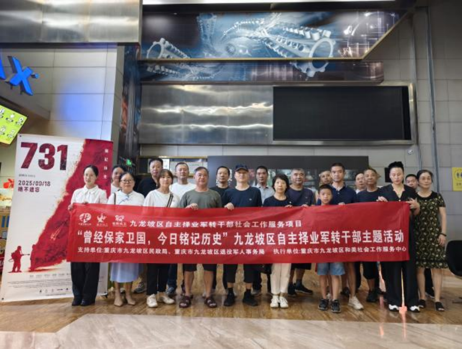 为深入贯彻爱国主义教育方针,弘扬伟大抗战精神,进一步增强自主择业军转干部的历史责任感与使命感,激发“退役不褪色、建功新时代”的奋斗热情,近日,九龙坡区自主择业军转干部社会工作服务项目组牵头开展主题教育活动,组织29名区自主择业军转干部及家属集中观看纪实性电影《731》,接受深刻的爱国主义与党性洗礼。