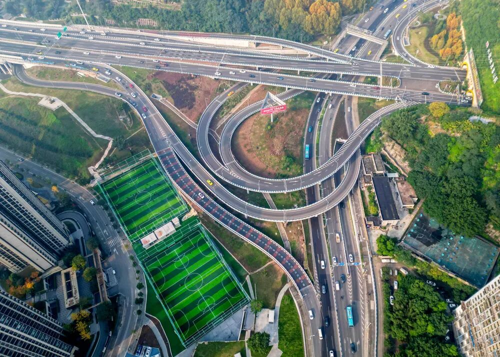 五台山足球公园的“诞生”,始于对城市低效空间的创新盘活。项目位于九龙坡区五台山立交桥下,由九龙城乡运营集团协同区城市管理局联合推进,以与立交相邻的2万平方米公园绿地建设为核心牵引,同步实施1.5万平方米桥下空间整治与3.5万平方米闲置地块盘活工程,总面积达70575平方米。