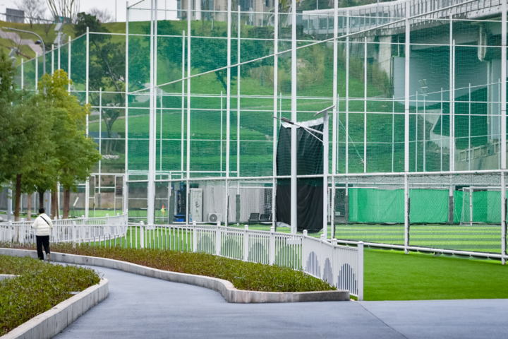 在北区的八人制足球场旁,市民杨林和球友收拾装备,他指着场边的停车位笑着说:“以前踢球最愁停车,现在踢完球转身就能上车,太方便了。”记者注意到,每个运动场地周边都规划了专属停车位,无论是羽毛球馆外的划线车位,还是足球场旁的生态车位,均设置了清晰指引标识。据统计,公园整体配套近250个机动车停车位,有效缓解了周边居民“运动停车难”的问题。