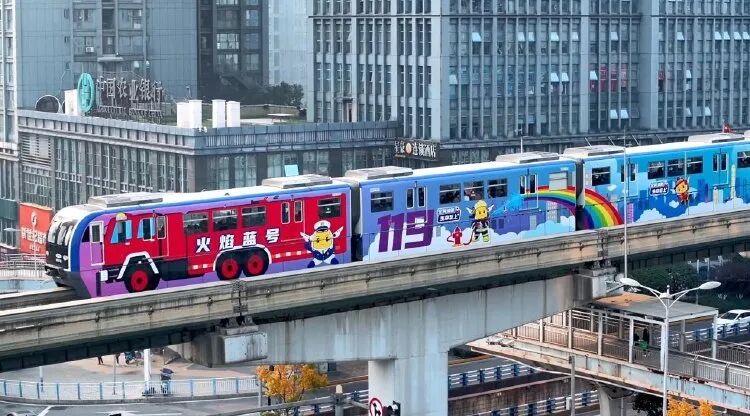 消防安全主题列车将山城地标与消防元素创新融合,以沉浸式体验让消防安全知识“跑”进市民通勤路,一经亮相便成为全网热议的“移动打卡点”,掀起全民学习消防知识的热潮。