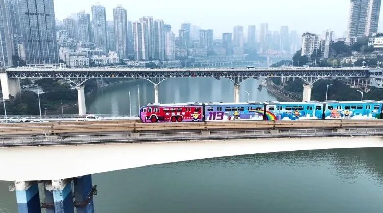 当列车飞驰过江畔、穿行于城市楼宇之间,宛如一幅动态展开的城市安全画卷,成为重庆最醒目的移动科普阵地,不少市民特意等候列车进站,只为记录下这道独特的城市风景线。