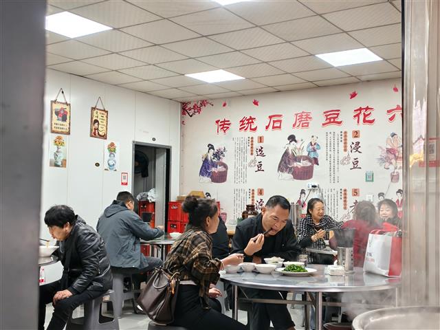 (张记石磨豆花顾客营门。记者 何明燕 摄)