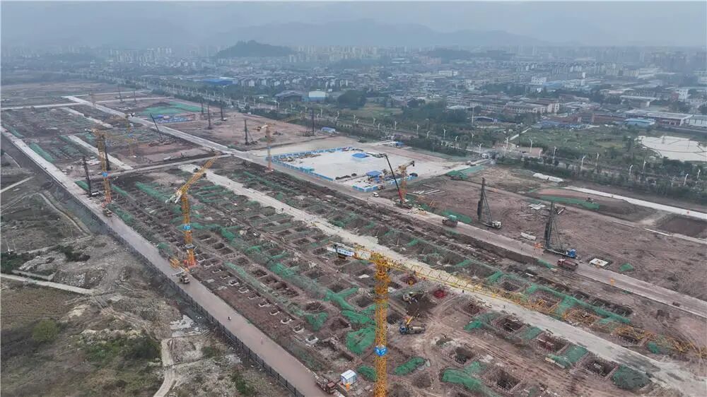 “我们采取‘优先中部、兼顾两端’的施工策略,先完成中部区域基础施工保障钢结构进场,再同步推进两端区域,确保工作面不闲置。”特种飞行器智慧工厂项目生产经理杨德昌介绍,目前A02部装厂房承台基础施工已完成50%,预计12月下旬即可转入地上钢结构施工。