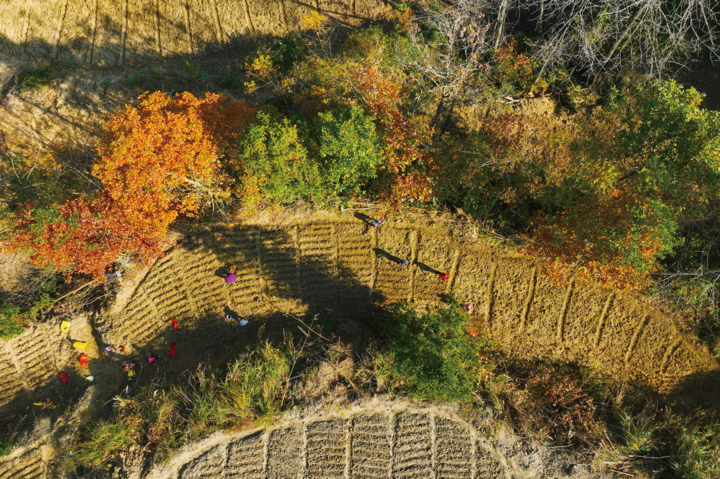 ▲黔江区鹅池镇社溪村,村民忙着种植百合(无人机照片)
