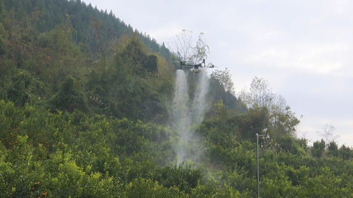 “社区共有柑橘3000亩,趁着这几天天气好,我们正在进行无人机统防统治,预计用两天时间完成打药,可有效防治黄龙病。”高碛社区工作人员欧美玲介绍。