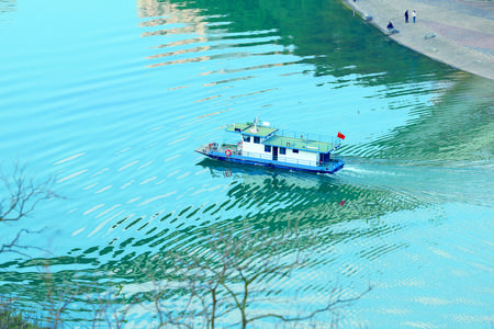 近日,一艘清漂船行驶在清澈的綦河上,工作人员正在开展常态化的清漂工作,维护水域生态环境。