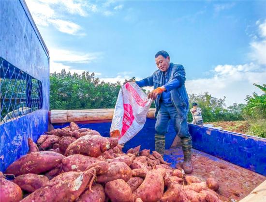 日前,玉溪镇金堆社区红薯种植基地内一片繁忙景象,田垄间一个个饱满圆润、色泽鲜亮的红薯破土而出,农户们分工协作,有条不紊地进行挖掘、分拣、装袋、装车,一派喜人的丰收图景。作为金堆社区集体经济产业,红薯种植及加工已经成为了村民致富增收的重要产业。