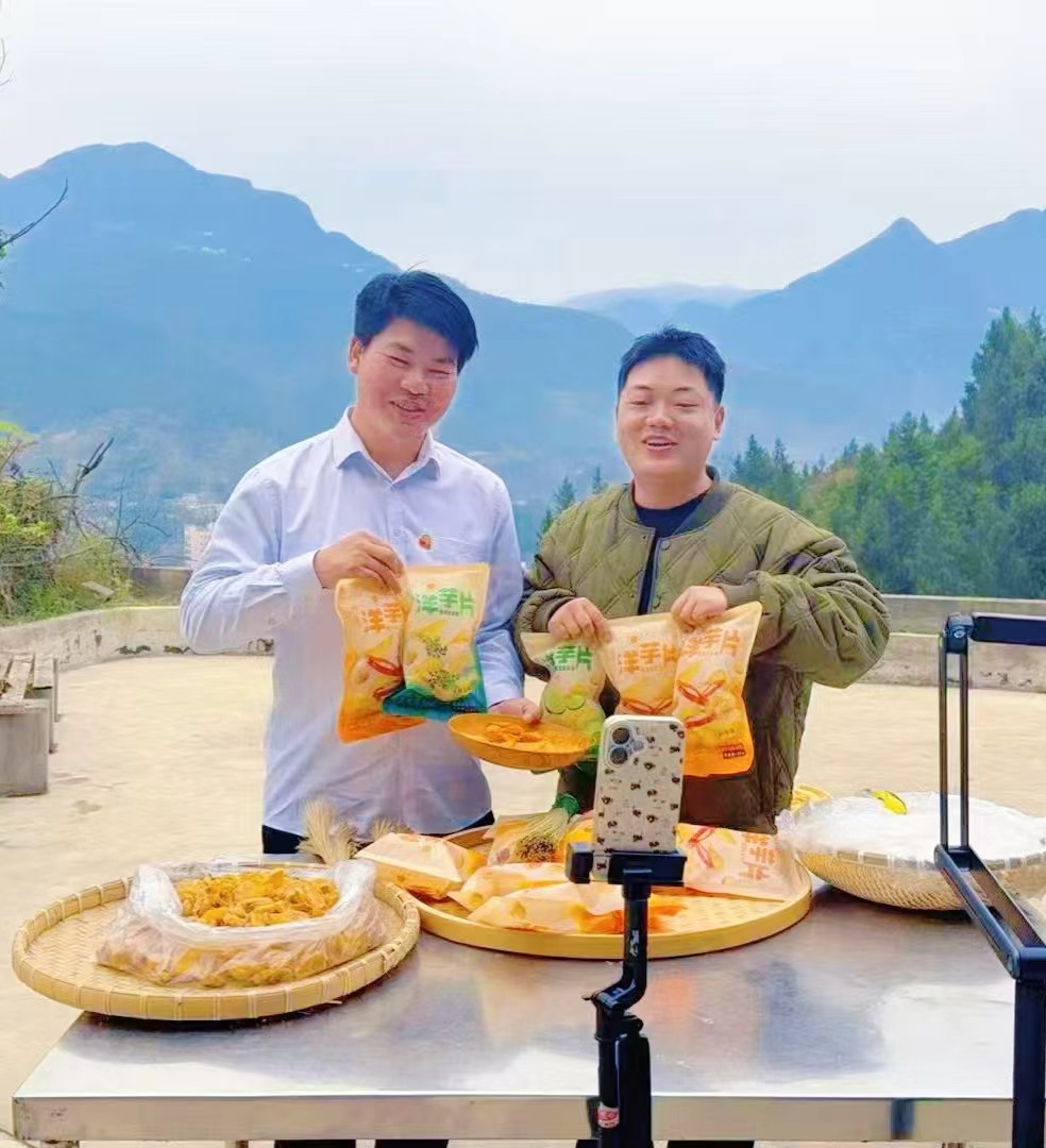 “家人们快看!这就是咱巫溪高山种的洋芋片,咬一口麻辣鲜香直冒尖,纯手工零添加,库存就这些,手慢无!”深夜的手机镜头前,王甫明举着一包金黄酥脆的洋芋片,声音虽带沙哑却满是激情,熟练地向网友展示着家乡的宝贝。这个在直播间里挥洒汗水的带货博主,还有两个身份:巫溪县菱角镇人大代表、桂花村党支部副书记。