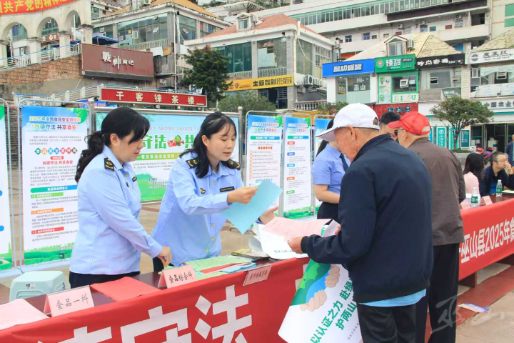 10月15日,由巫山县食药安委办公室、县市场监管局主办,县检察院、县公安局、县发展改革委、县卫生健康委、县科协等部门协办的以“尚德守法 共享食安”为主题的2025年食品安全周活动在市政广场举行。