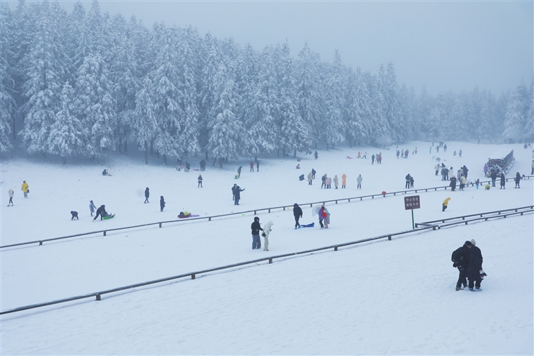▲游客尽情享受着冰雪运动的欢乐。(杨 丹/摄)
