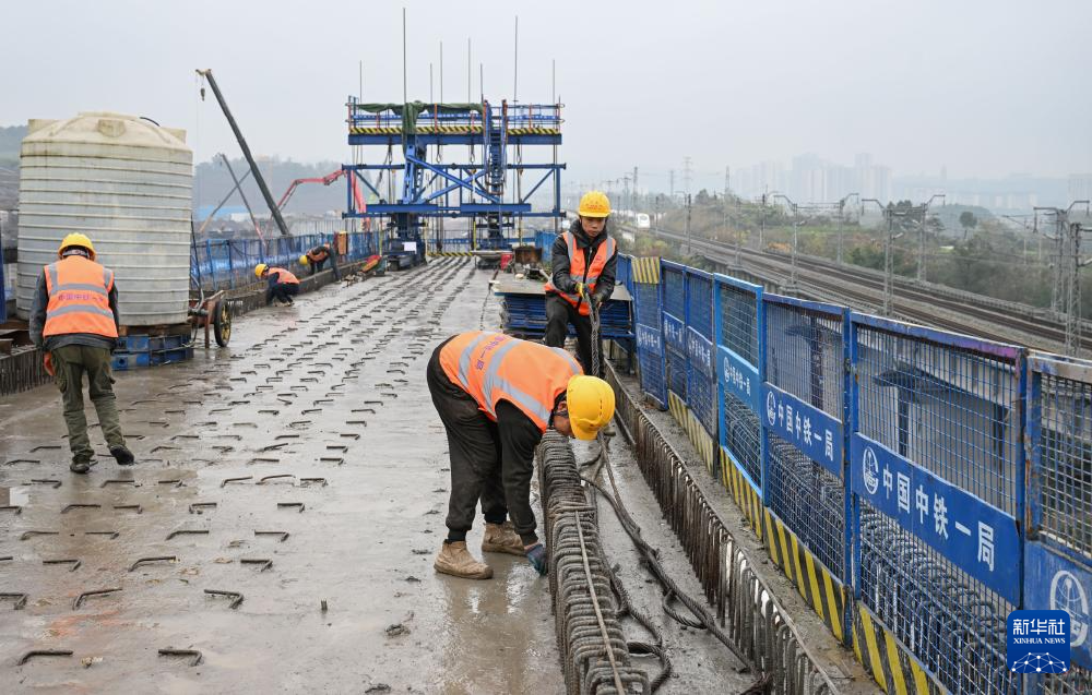 ▲12月25日,工人在渝万高铁打青沟左线大桥连续梁建设现场施工作业。新华社记者 陈诚 摄