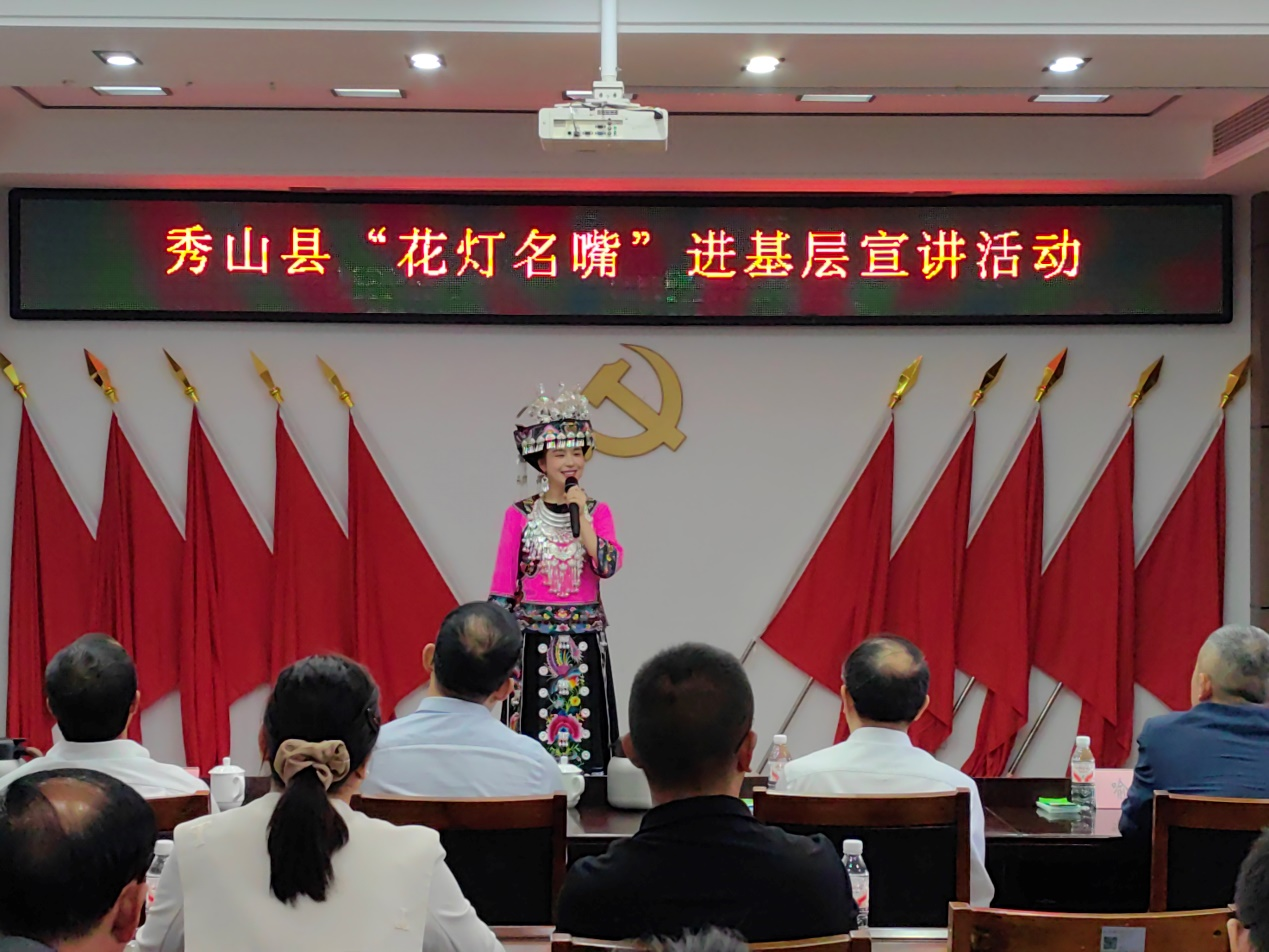 据悉,自2022年“花灯名嘴”宣讲团成立后,宣讲足迹走遍秀山。这支队伍跳出传统宣讲模式,把秀山民歌、三句半、快板等民间艺术融入花灯名嘴宣讲,把党的创新理论、方针政策揉进乡土事,用花灯调创新花灯说唱,用“沾泥土、带露珠、冒热气”的宣讲鼓舞人心、凝聚人心。