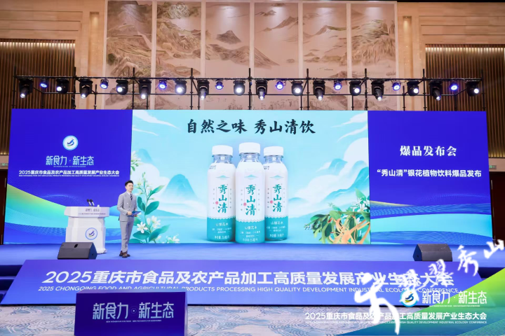 在2025重庆市食品及农产品加工高质量发展产业生态大会的“爆品”发布环节,“秀山清”银花植物饮料作为爆品发布,惊艳亮相。